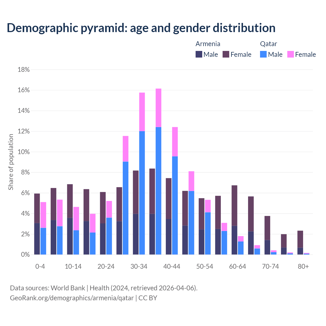 Demographics of Armenia compared to Qatar: