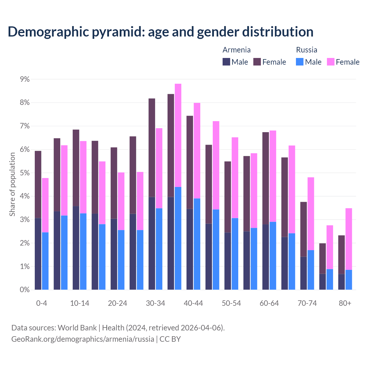 Demographics of Armenia compared to Russia: