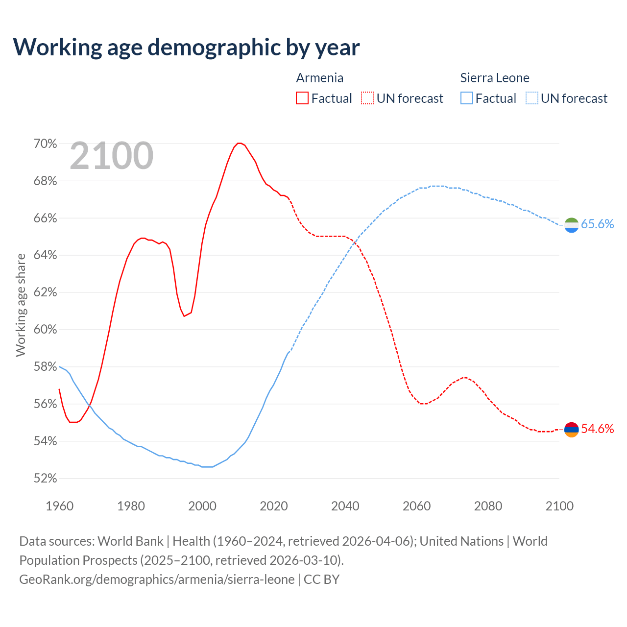 - Armenia has 2M working age adults (aged 15-64) vs 5.31M in Sierra Leone.