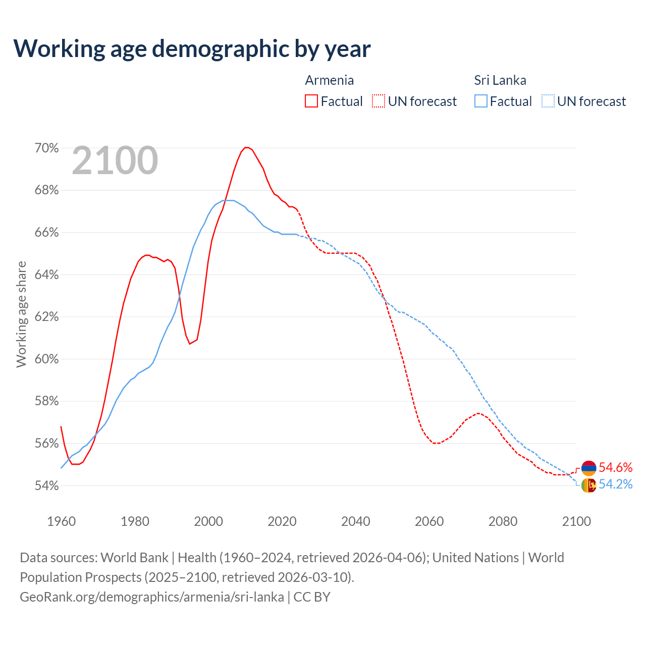 - Armenia has 2M working age adults (aged 15-64) vs 14.6M in Sri Lanka.