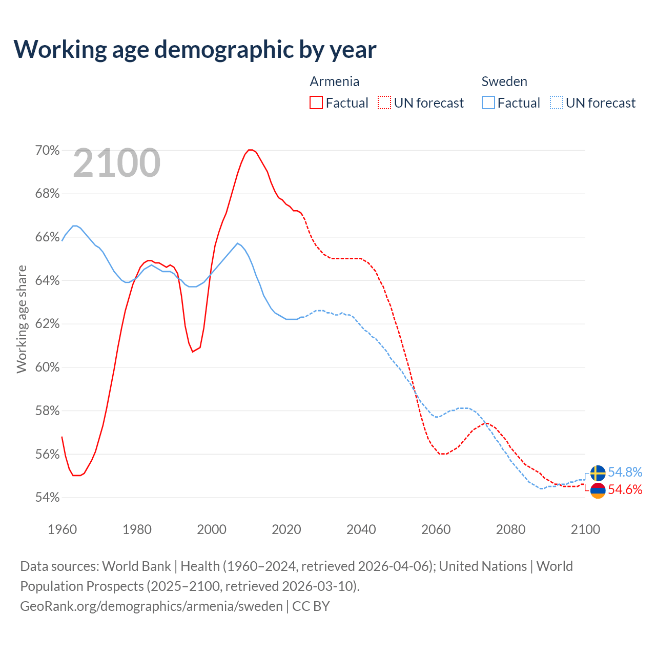 - Armenia has 2M working age adults (aged 15-64) vs 6.65M in Sweden.