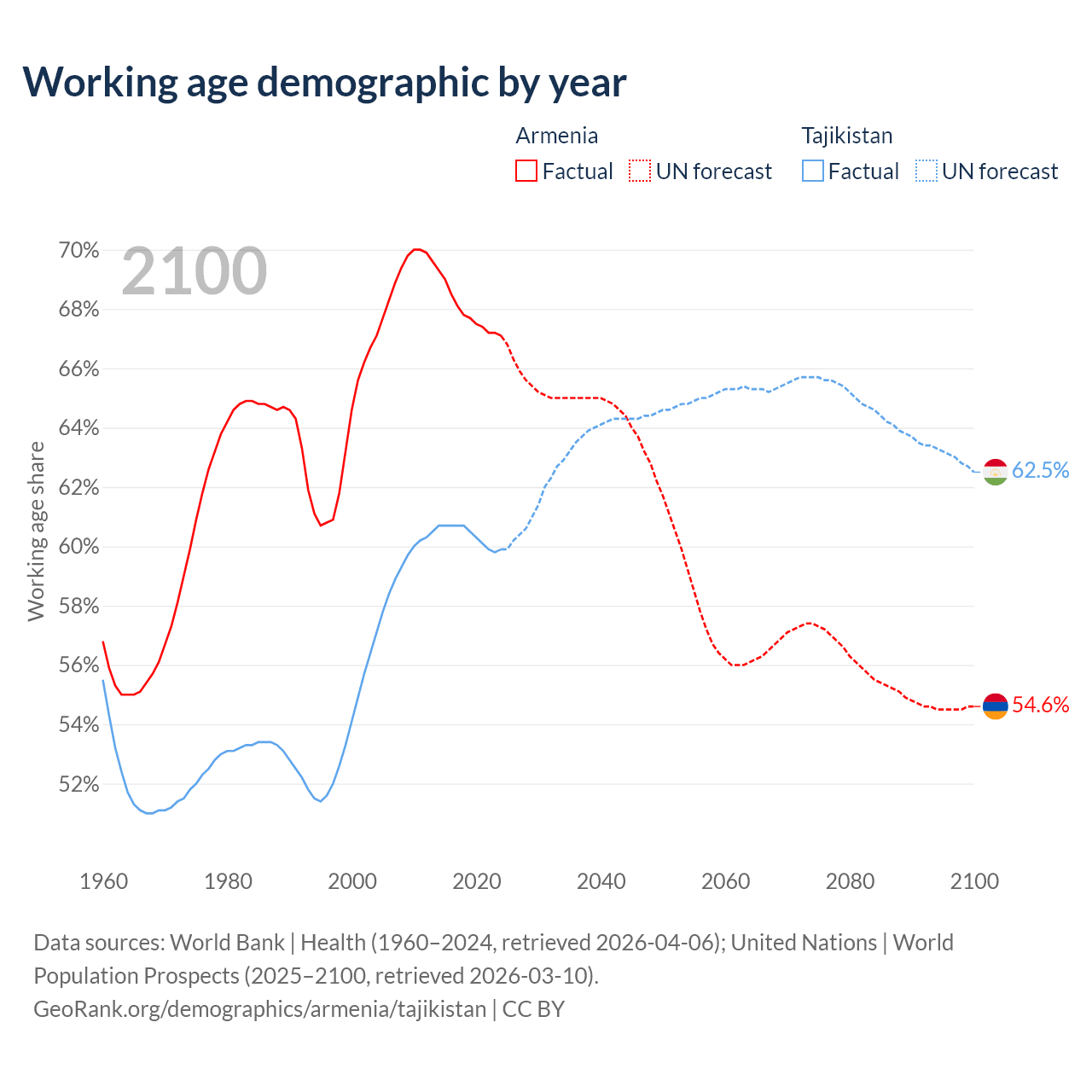 - Armenia has 2M working age adults (aged 15-64) vs 6.61M in Tajikistan.