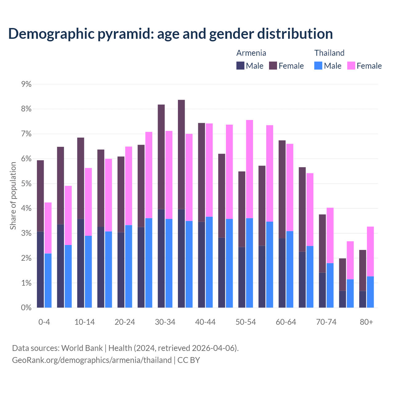 Demographics of Armenia compared to Thailand: