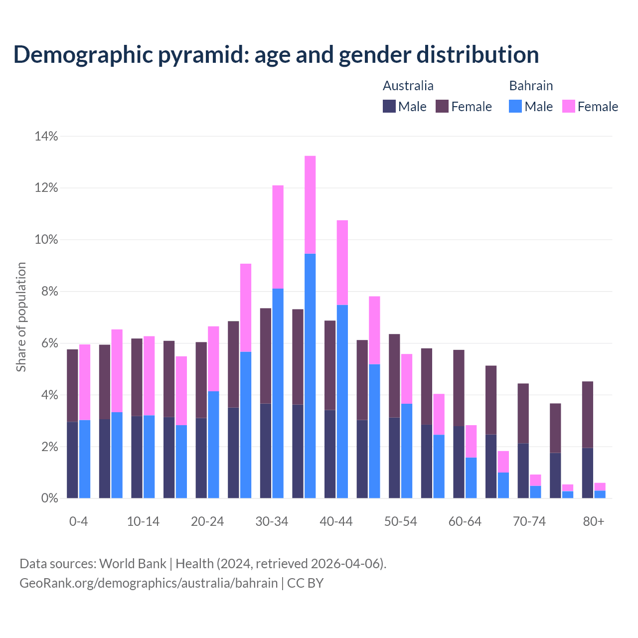 Demographics of Australia compared to Bahrain: