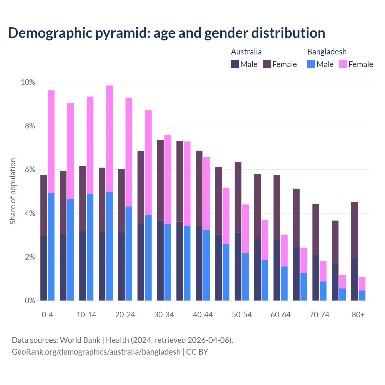 Demographics of Australia compared to Bangladesh: