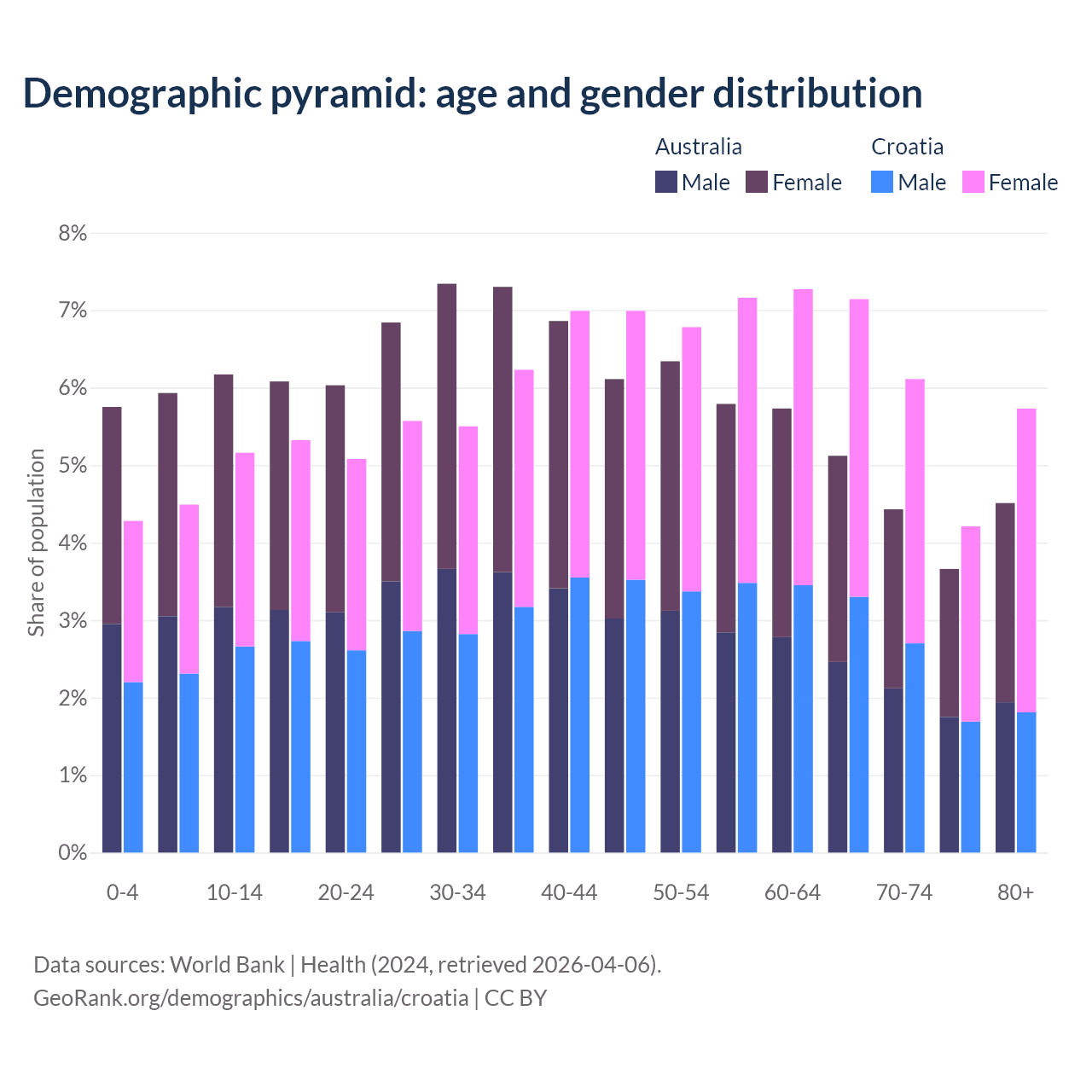 Demographics of Australia compared to Croatia: