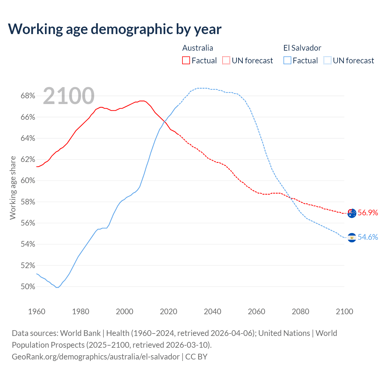 - Australia has 17.9M working age adults (aged 15-64) vs 4.29M in El Salvador.