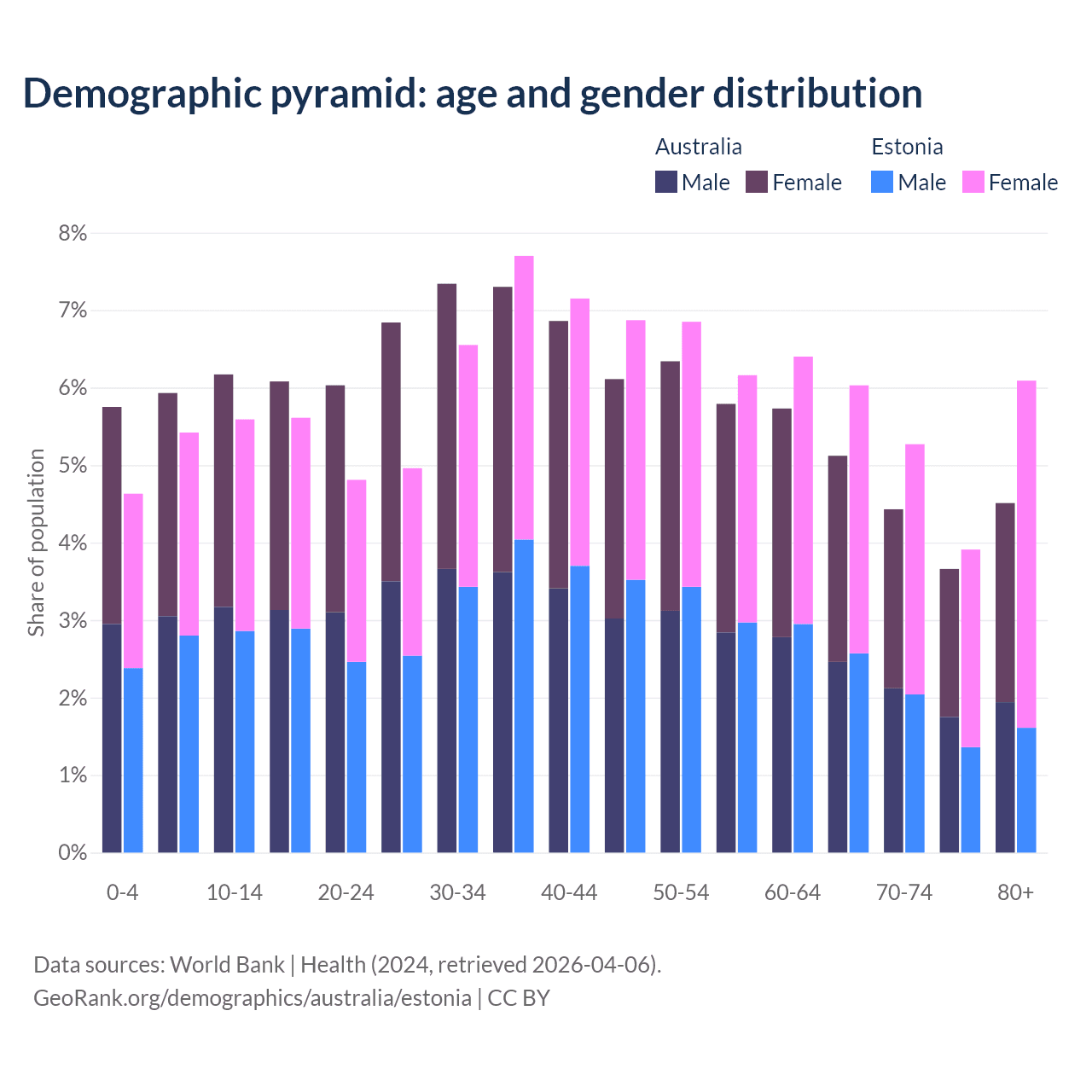 Demographics of Australia compared to Estonia:
