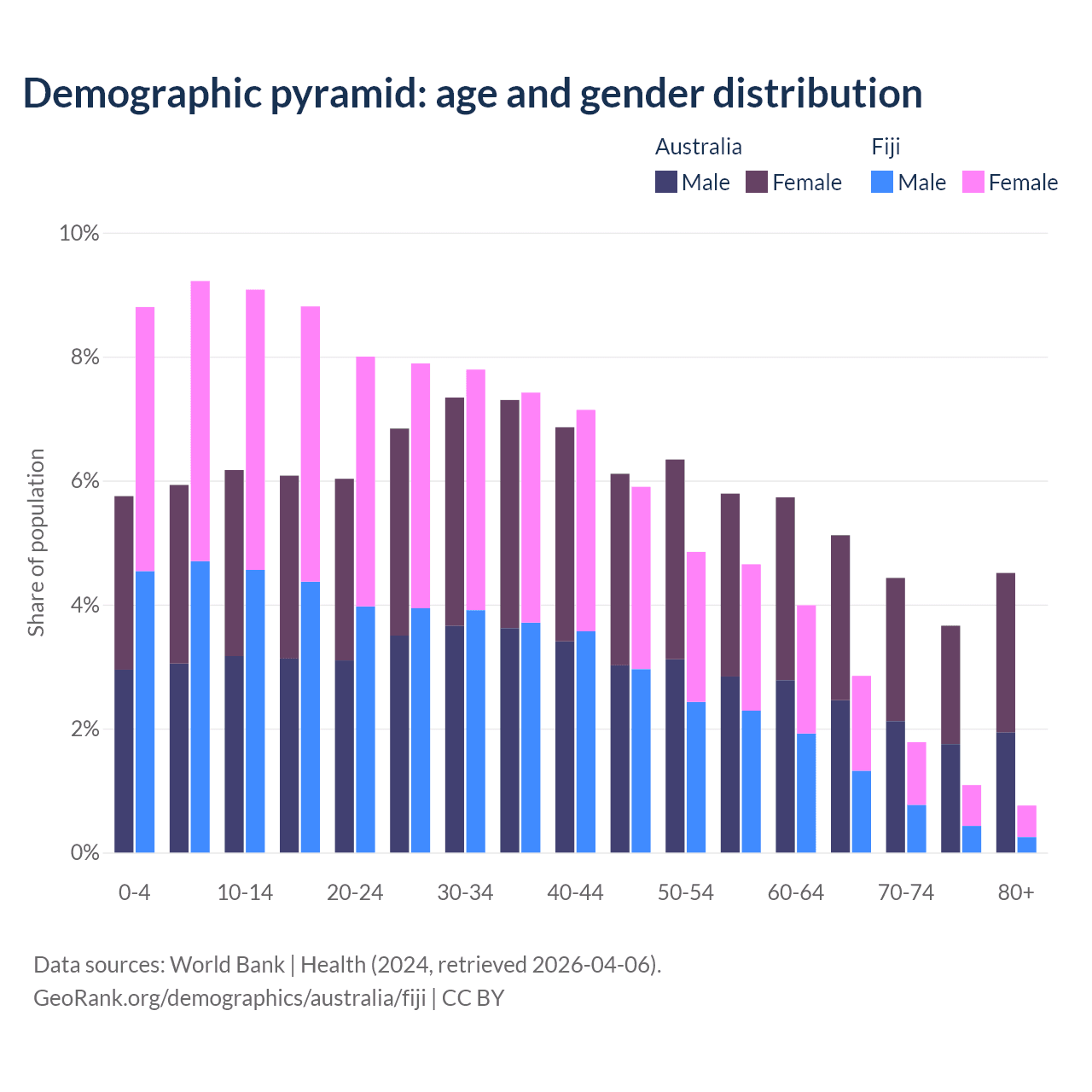 Demographics of Australia compared to Fiji: