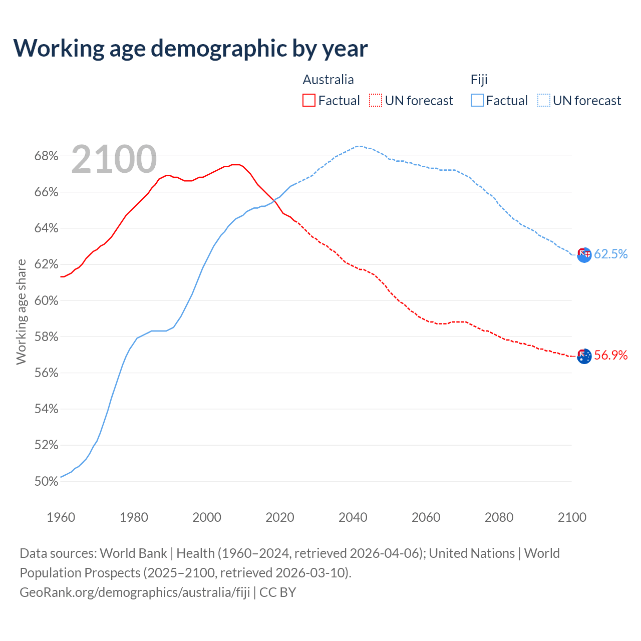 - Australia has 17.9M working age adults (aged 15-64) vs 623K in Fiji.