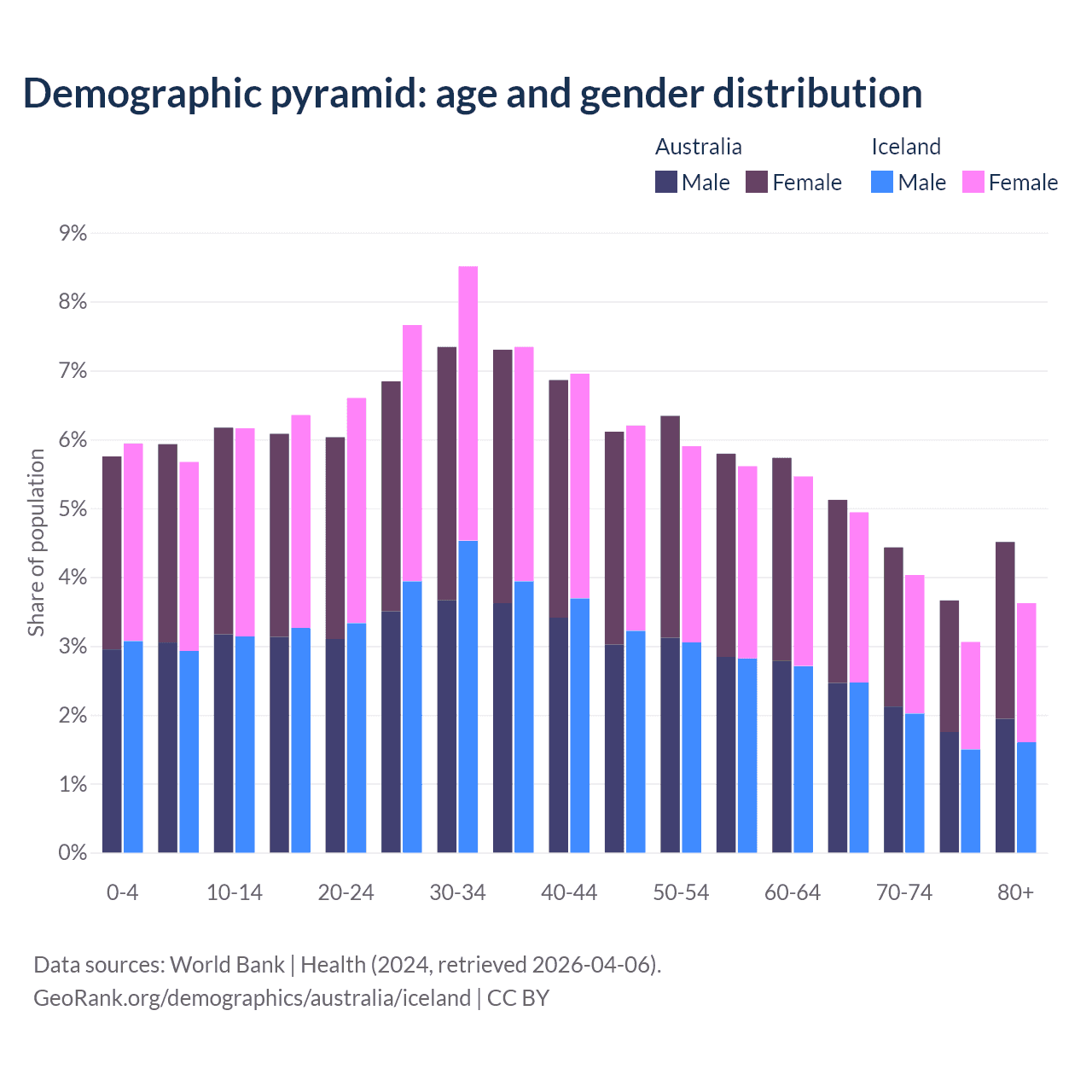 Demographics of Australia compared to Iceland: