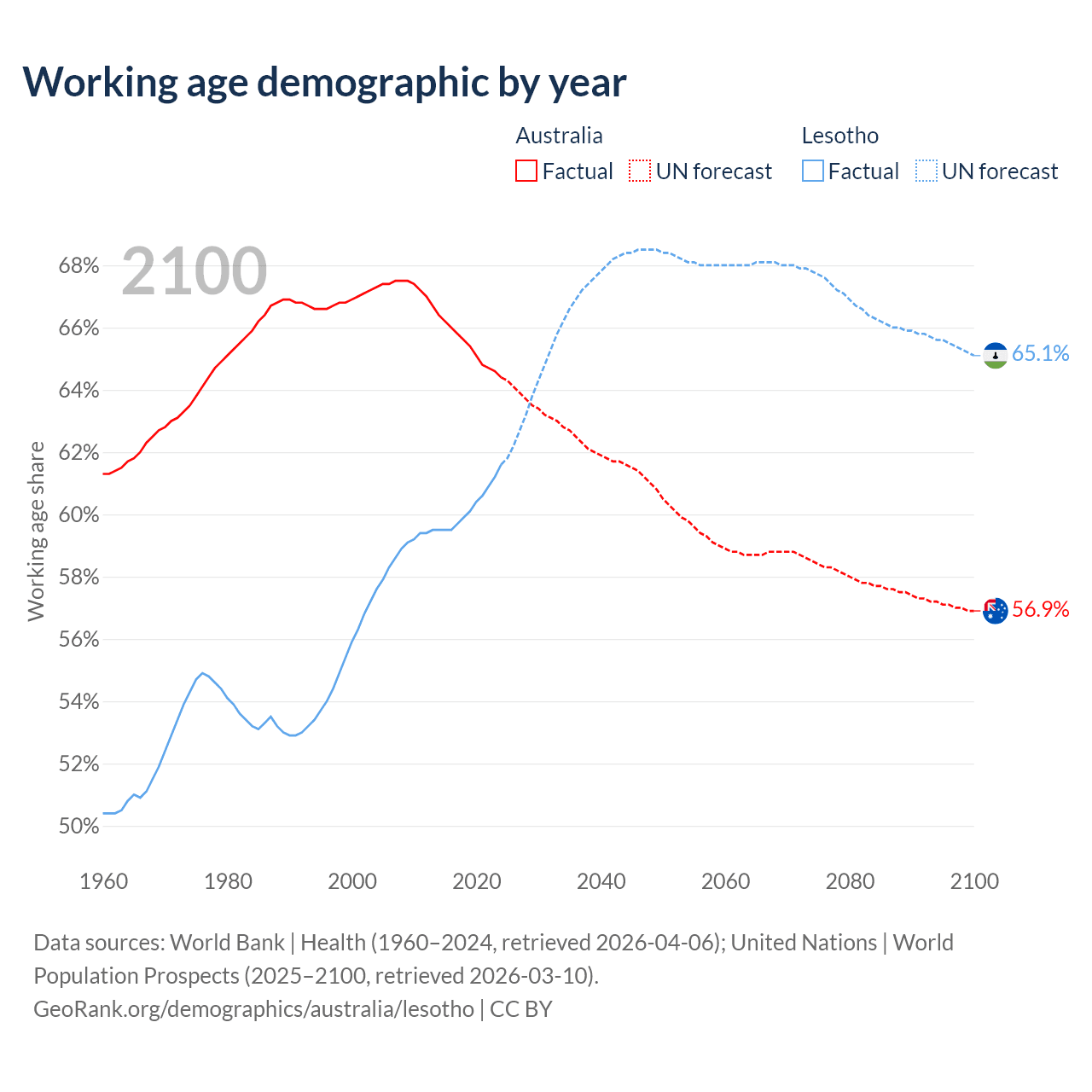 - Australia has 17.9M working age adults (aged 15-64) vs 1.48M in Lesotho.