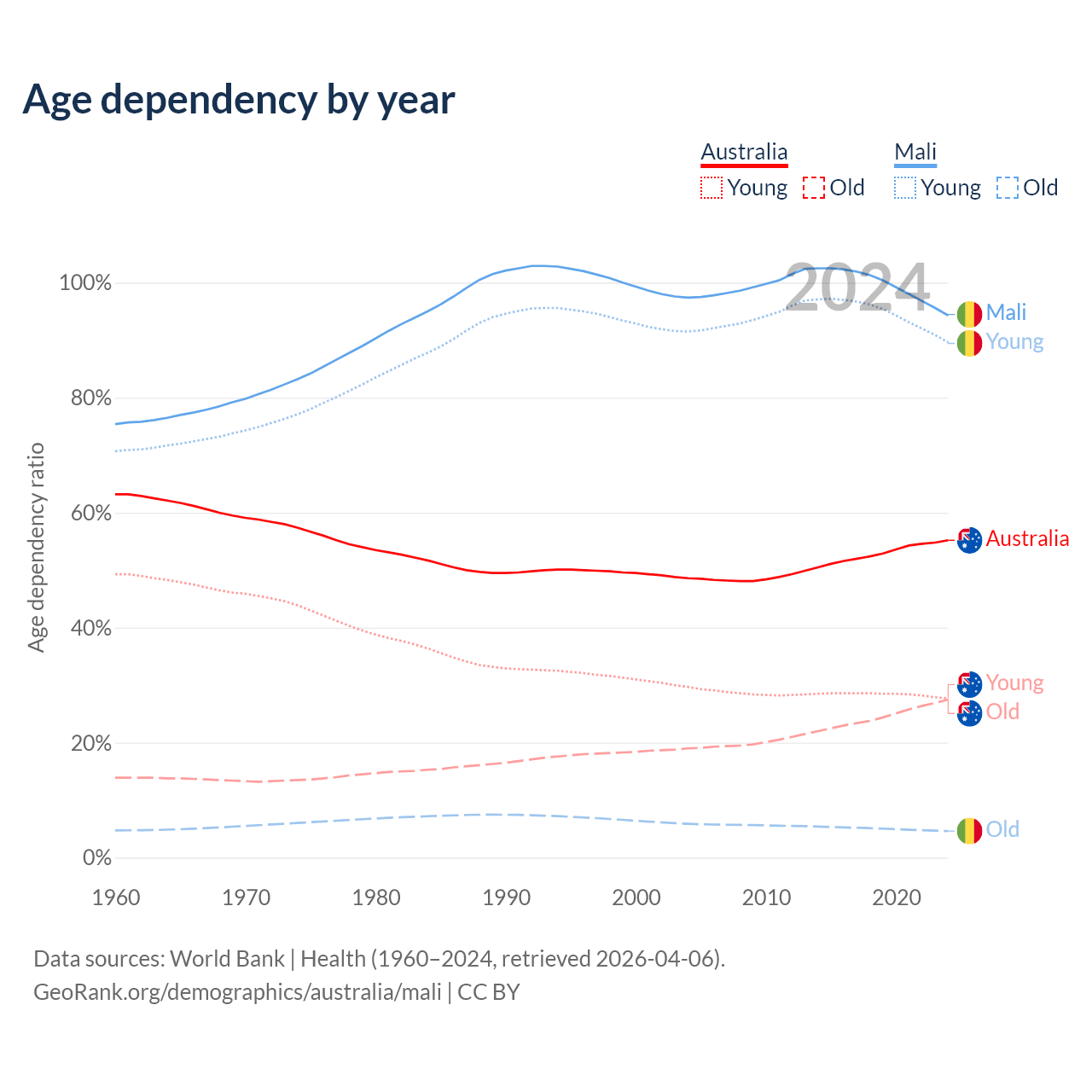 Demographics of Australia compared to Mali: