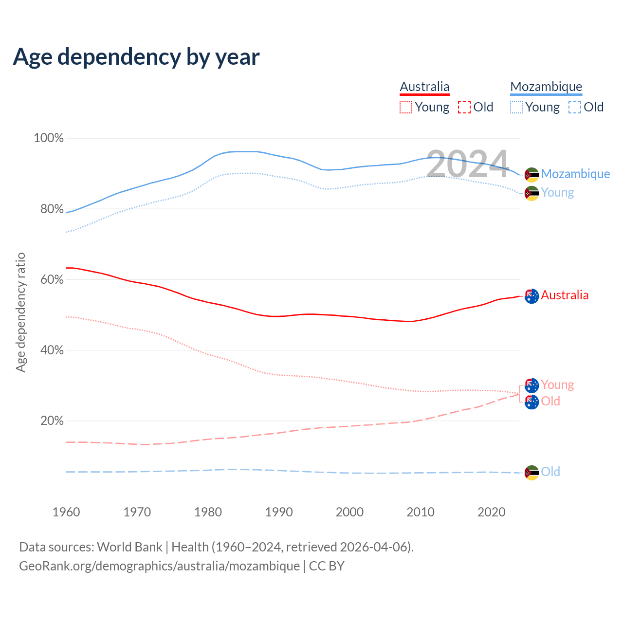 Demographics of Australia compared to Mozambique: