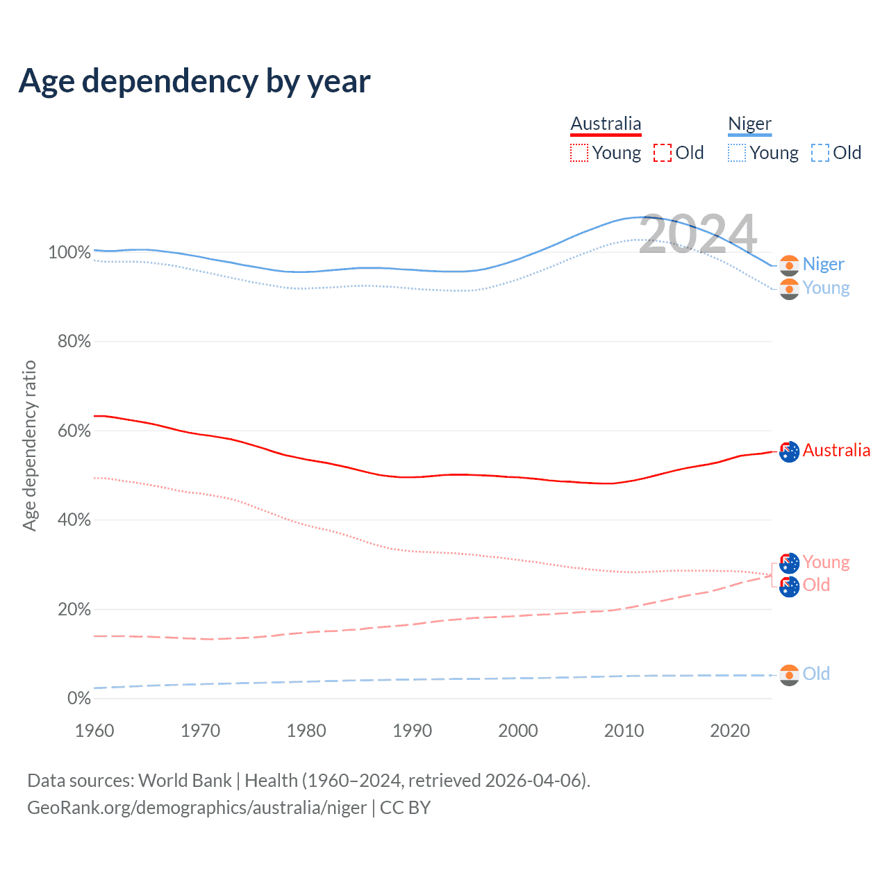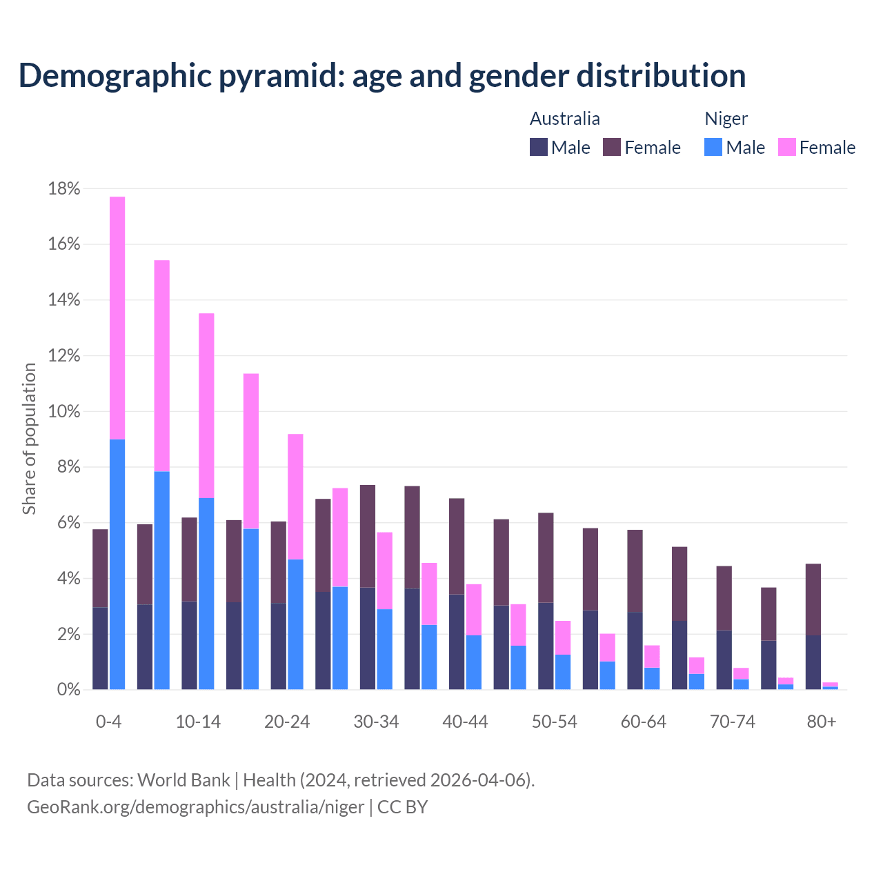 Demographics of Australia compared to Niger: