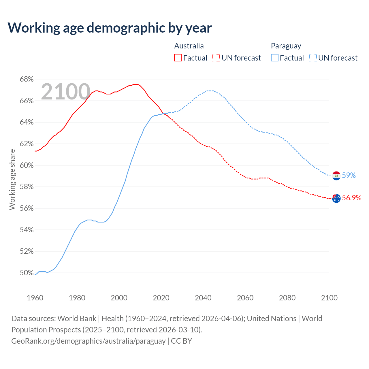 - Australia has 17.9M working age adults (aged 15-64) vs 4.62M in Paraguay.