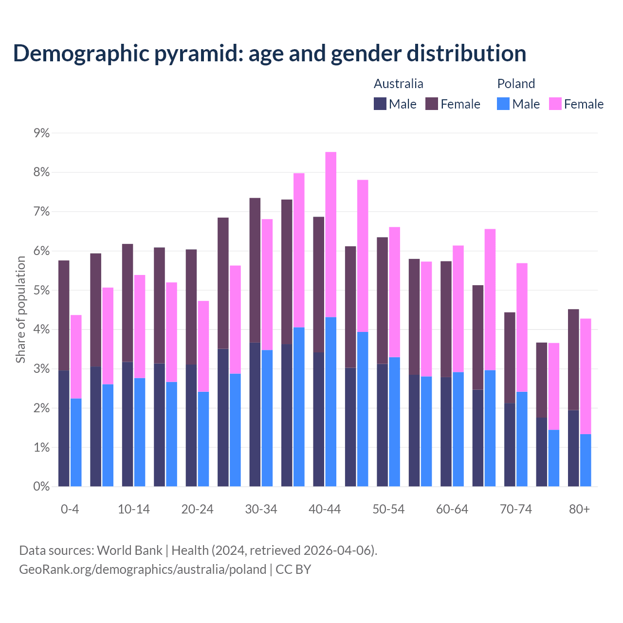 Demographics of Australia compared to Poland: