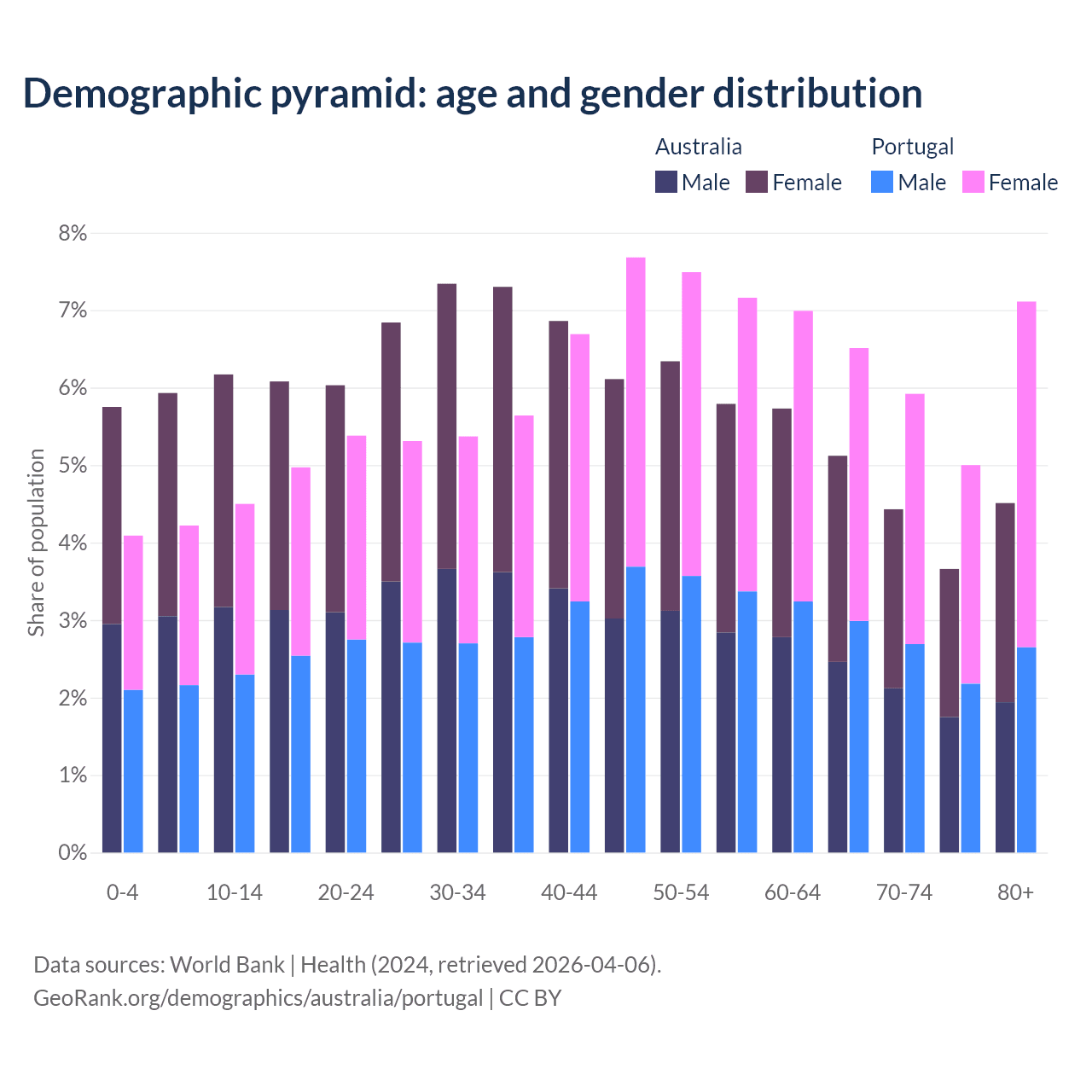 Demographics of Australia compared to Portugal: