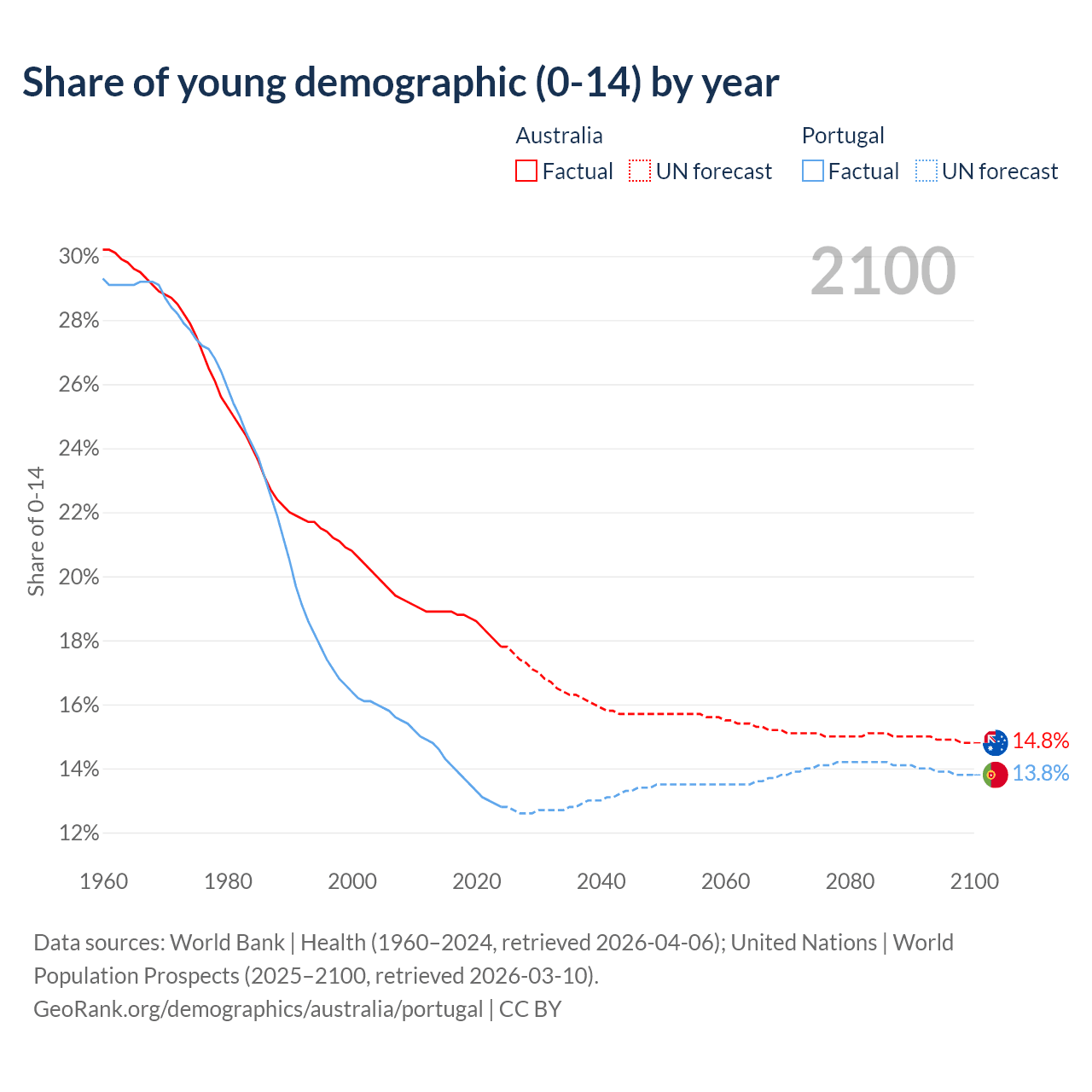 - The share of young demographic (0-15 years old) in Australia is 17.8% vs 12.8% in Portugal.