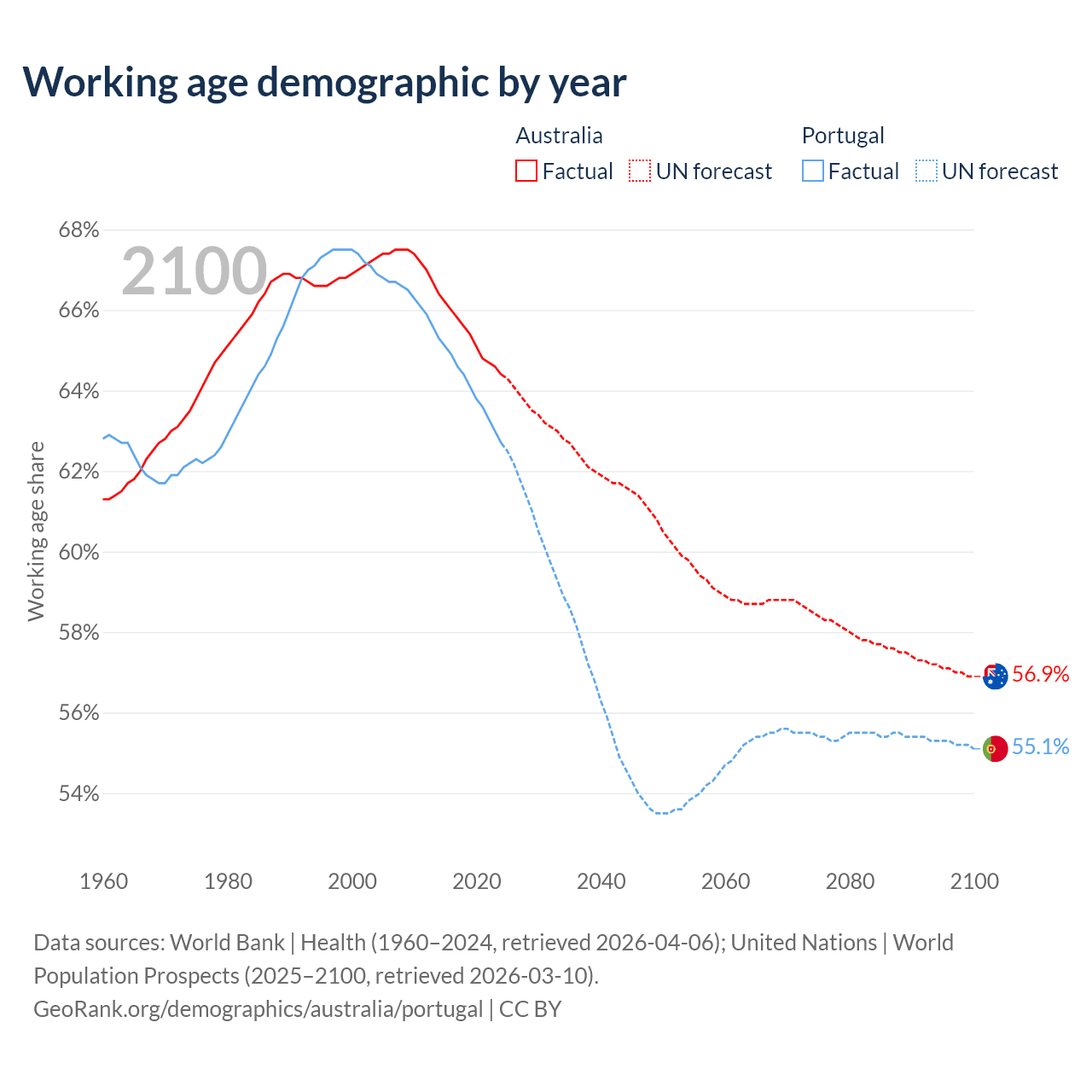 - Australia has 17.9M working age adults (aged 15-64) vs 6.68M in Portugal.