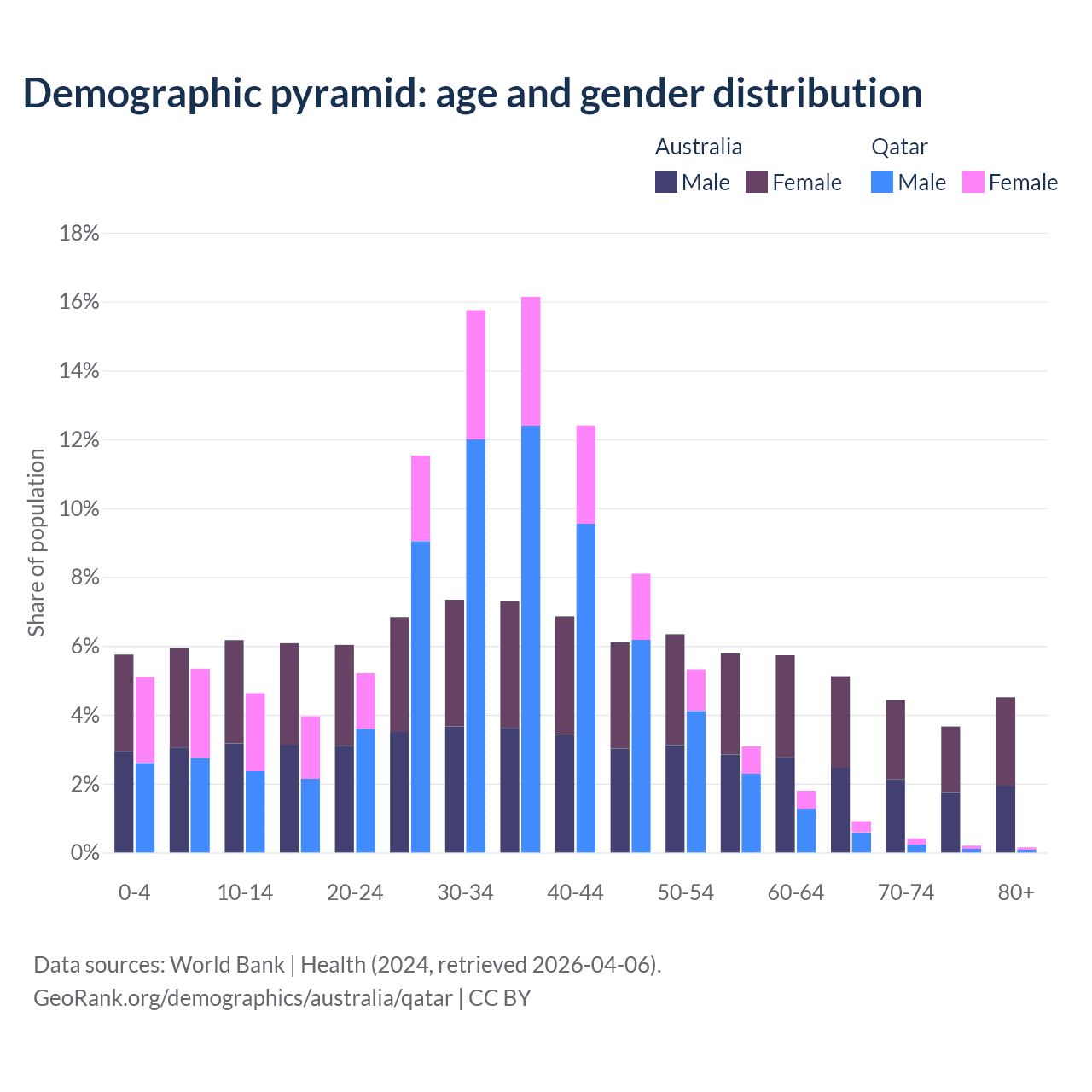 Demographics of Australia compared to Qatar: