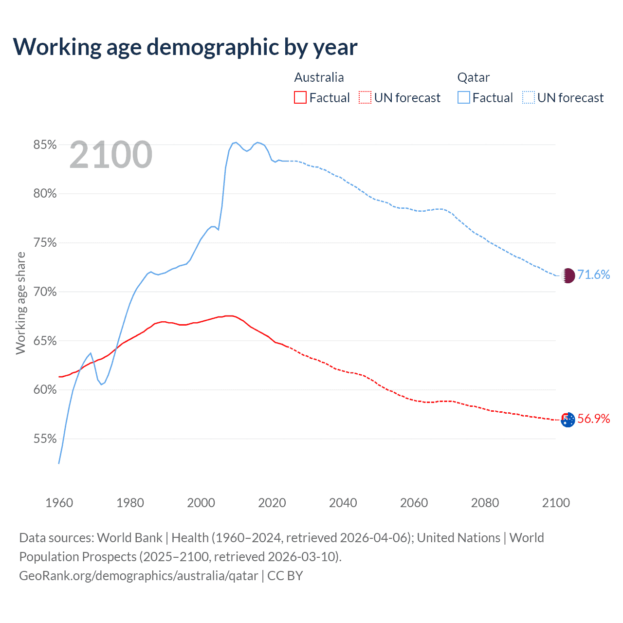 - Australia has 17.9M working age adults (aged 15-64) vs 2.5M in Qatar.