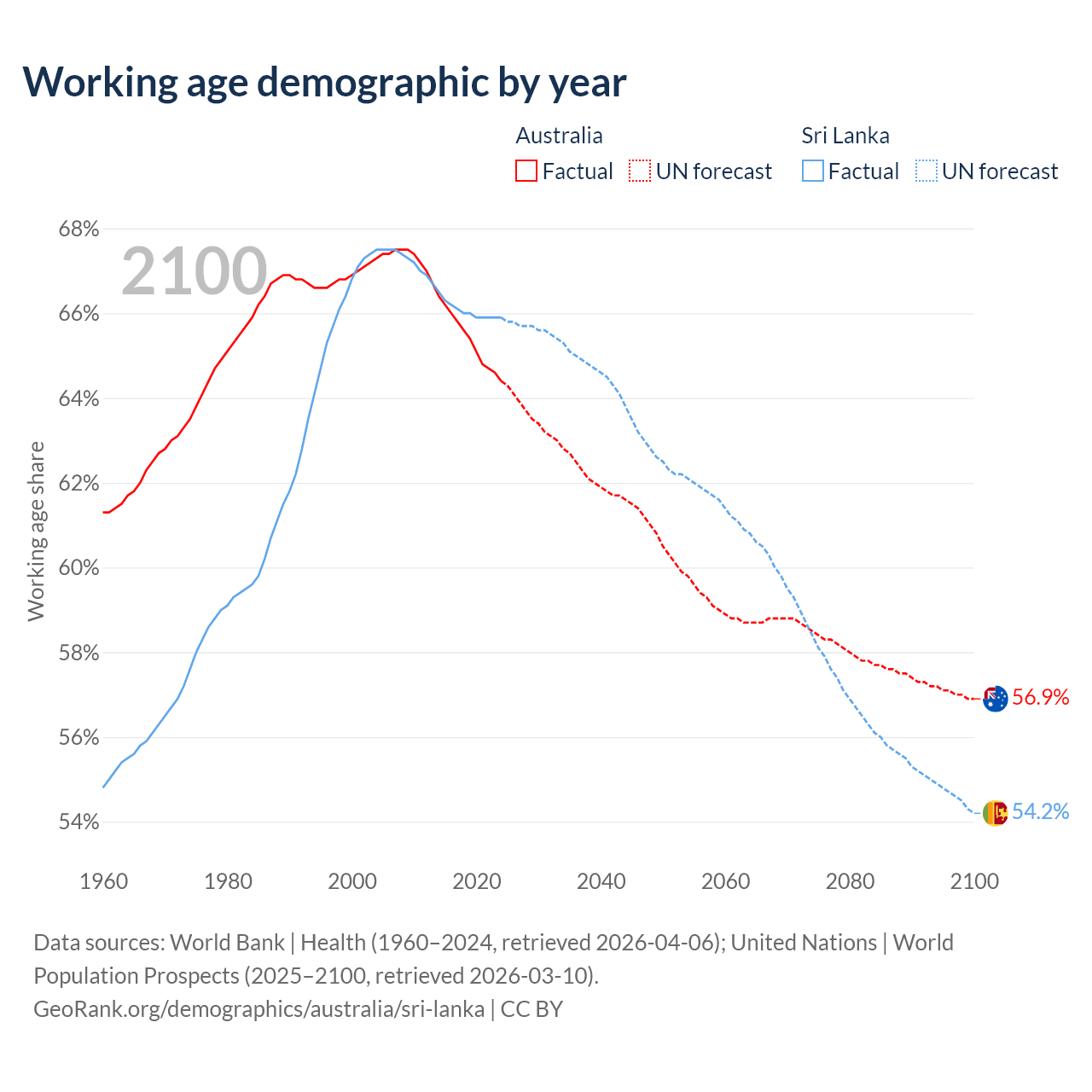 - Australia has 17.9M working age adults (aged 15-64) vs 14.6M in Sri Lanka.