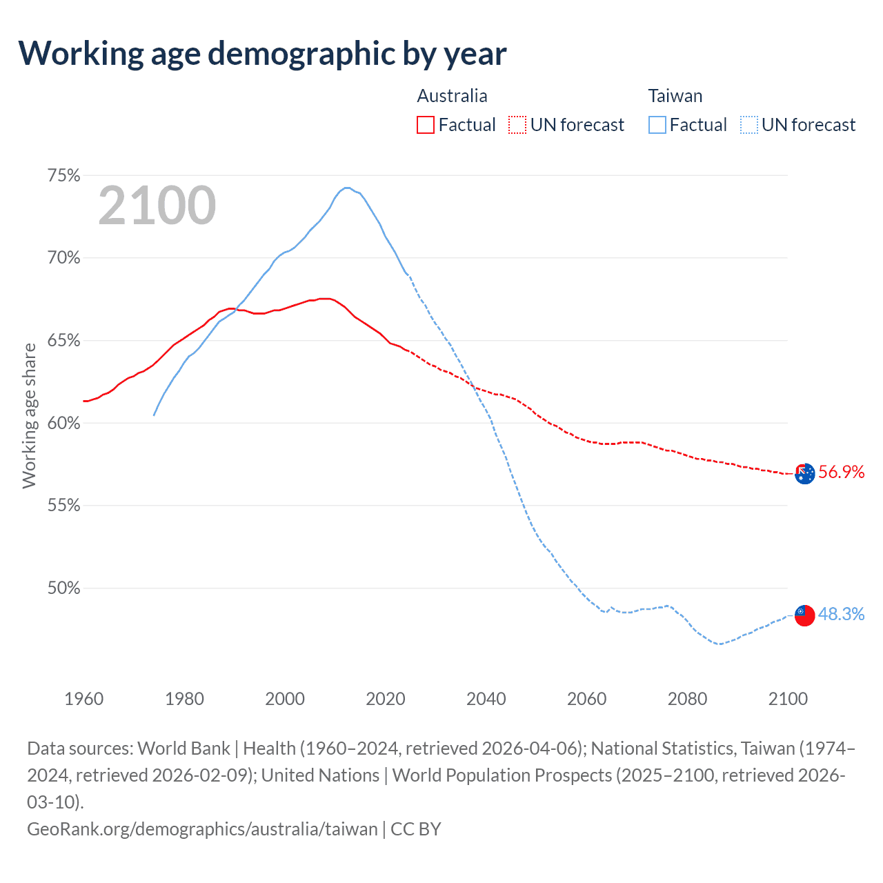 - Australia has 17.9M working age adults (aged 15-64) vs 16.1M in Taiwan.