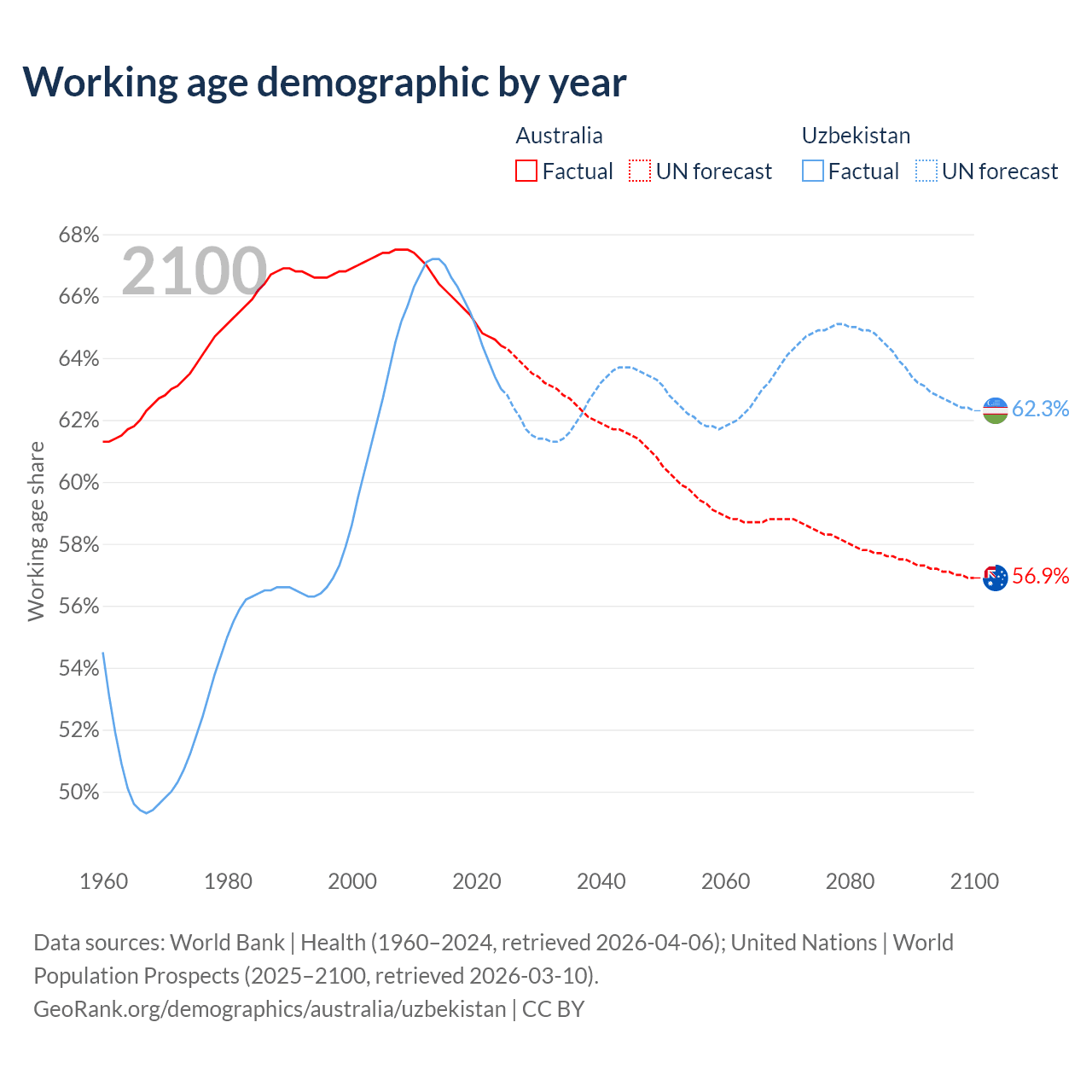 - Australia has 17.9M working age adults (aged 15-64) vs 23.9M in Uzbekistan.
