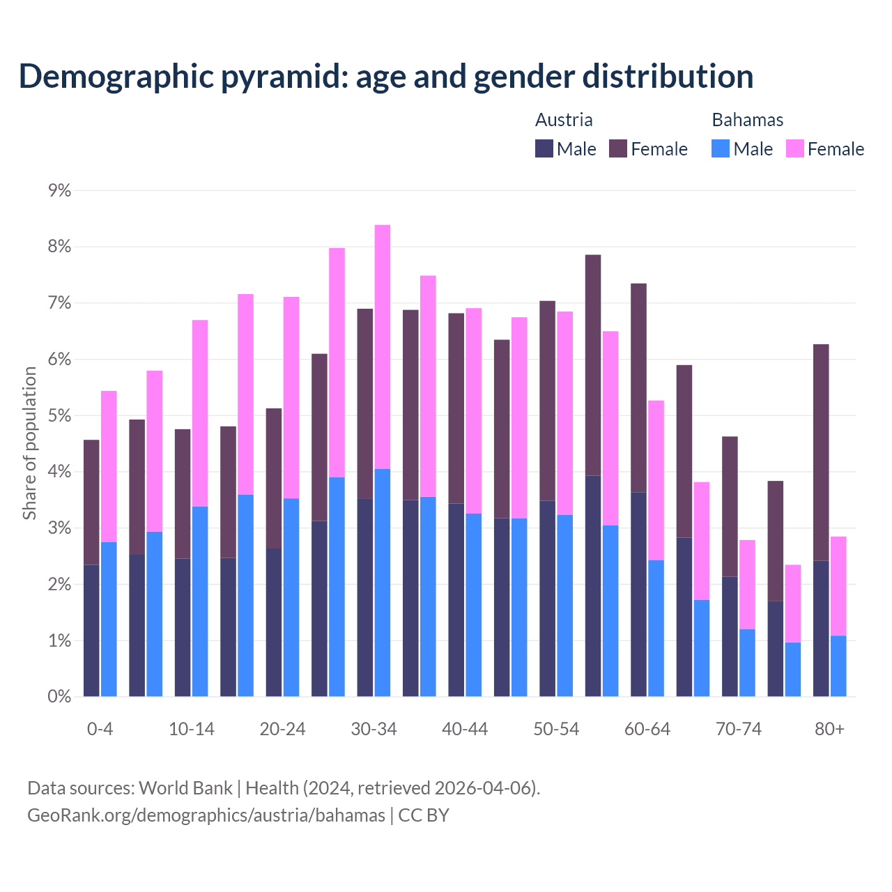 Demographics of Austria compared to the Bahamas: