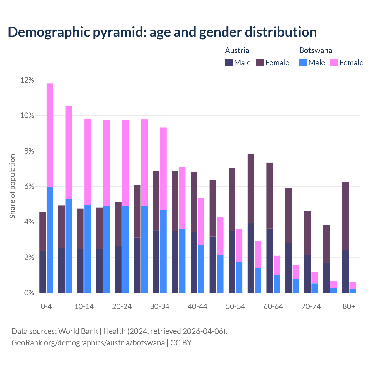 Demographics of Austria compared to Botswana: