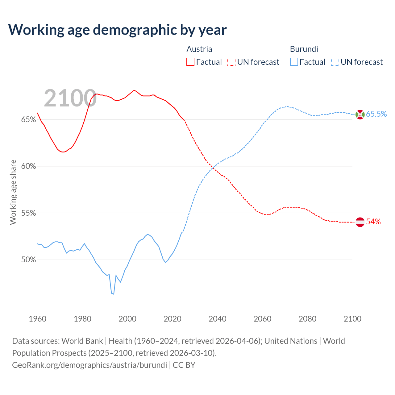 - Austria has 5.97M working age adults (aged 15-64) vs 7.83M in Burundi.