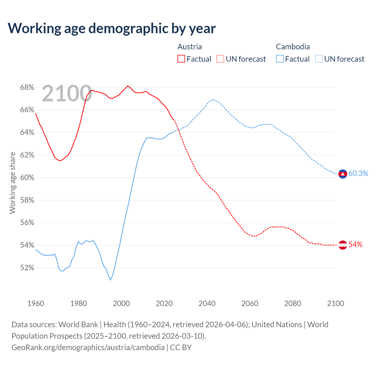 - Austria has 5.97M working age adults (aged 15-64) vs 11.6M in Cambodia.