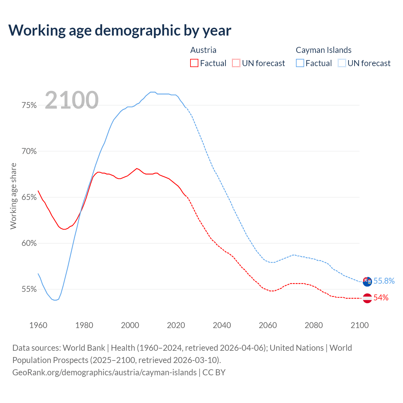 - Austria has 5.97M working age adults (aged 15-64) vs 58.1K in the Cayman Islands.