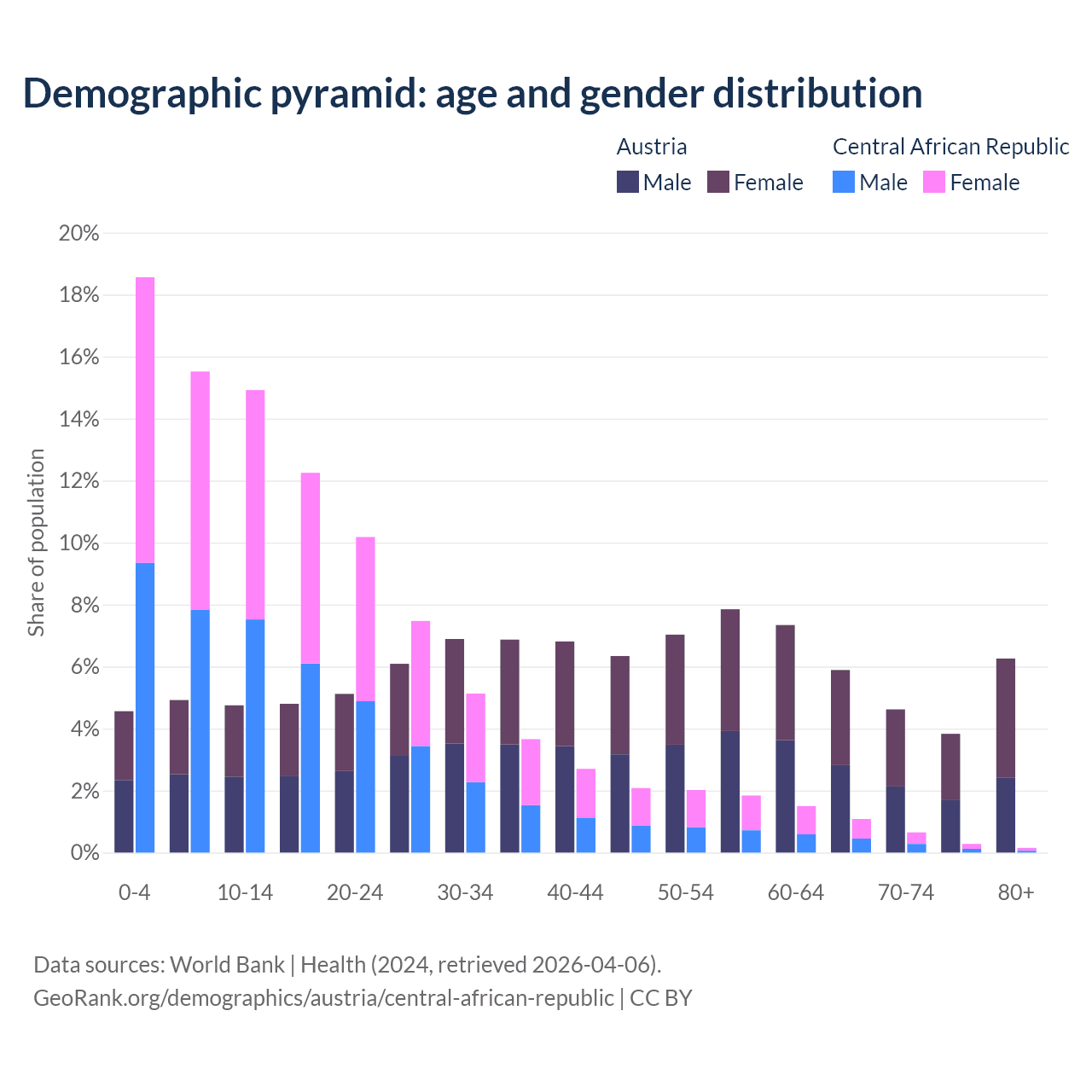Demographics of Austria compared to the Central African Republic: