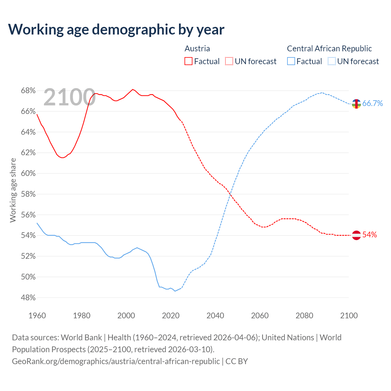 - Austria has 5.97M working age adults (aged 15-64) vs 2.81M in the Central African Republic.