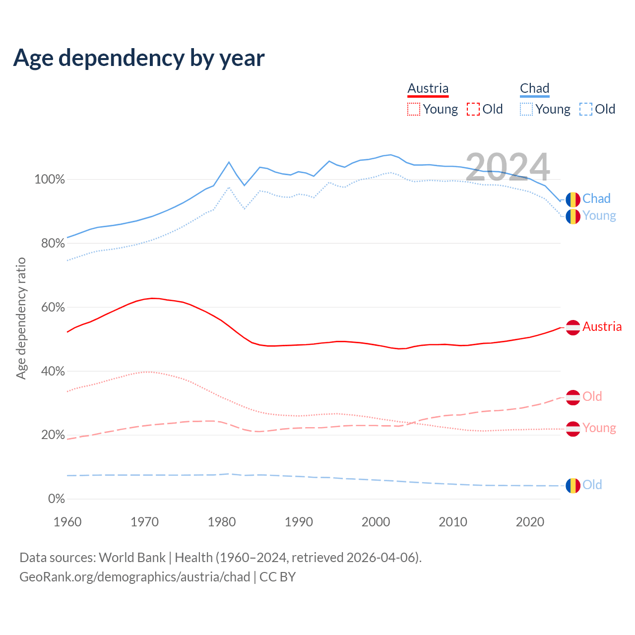 Demographics of Austria compared to Chad: