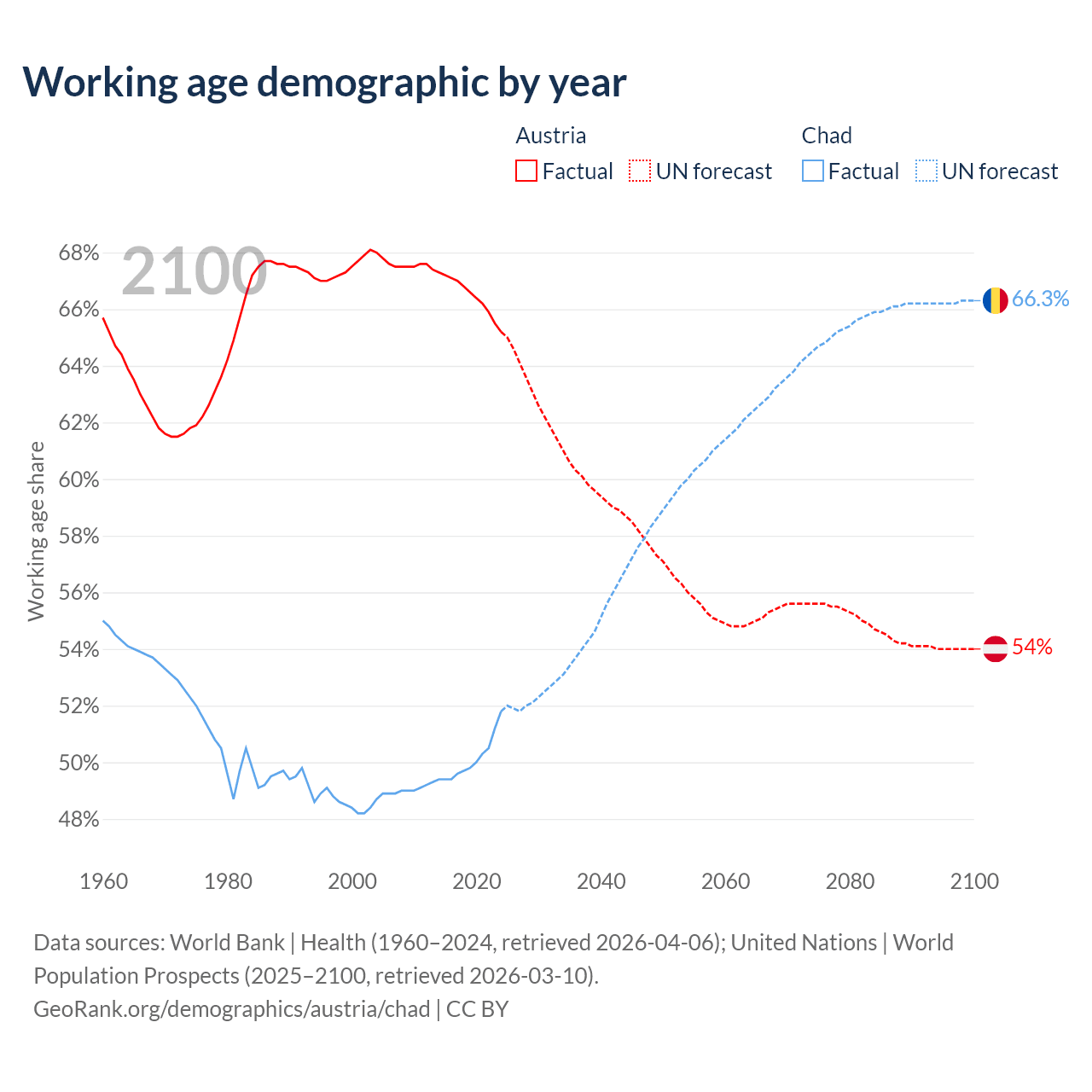 - Austria has 5.97M working age adults (aged 15-64) vs 11.3M in Chad.