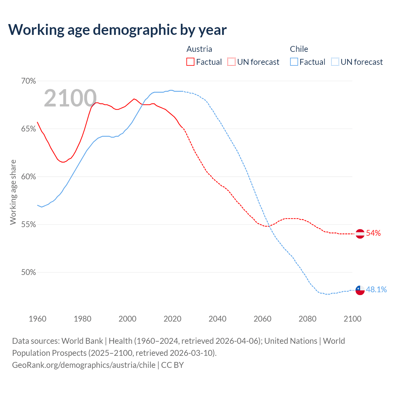 - Austria has 5.97M working age adults (aged 15-64) vs 13.8M in Chile.