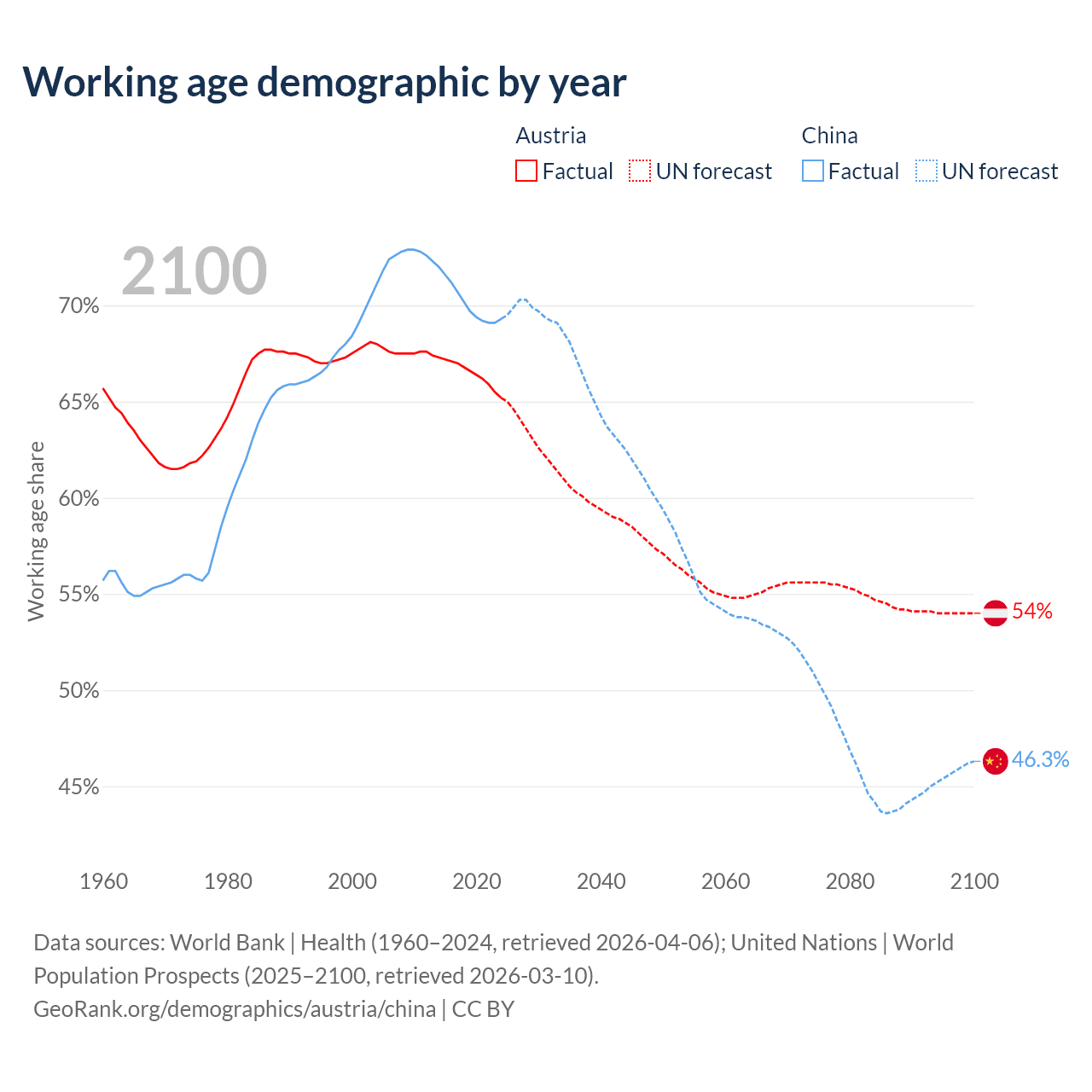 - Austria has 5.97M working age adults (aged 15-64) vs 972M in China.