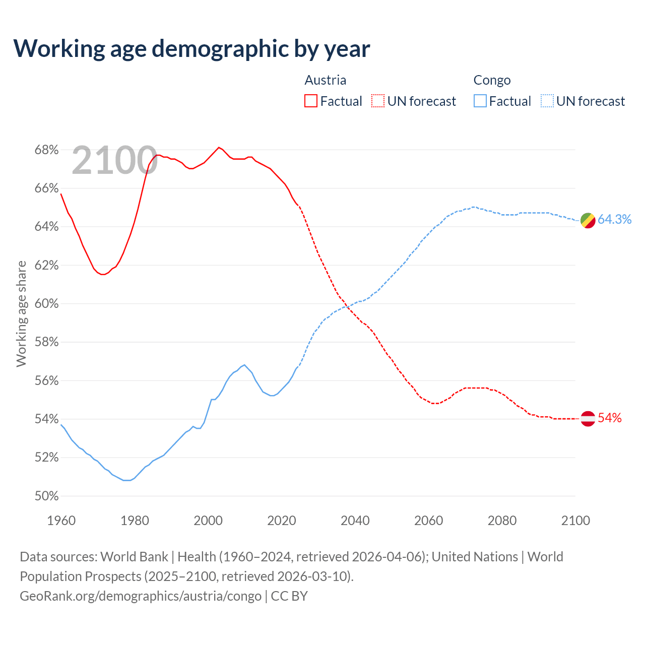 - Austria has 5.97M working age adults (aged 15-64) vs 3.78M in the Congo.