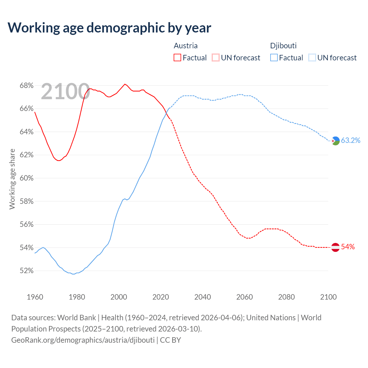 - Austria has 5.97M working age adults (aged 15-64) vs 794K in Djibouti.
