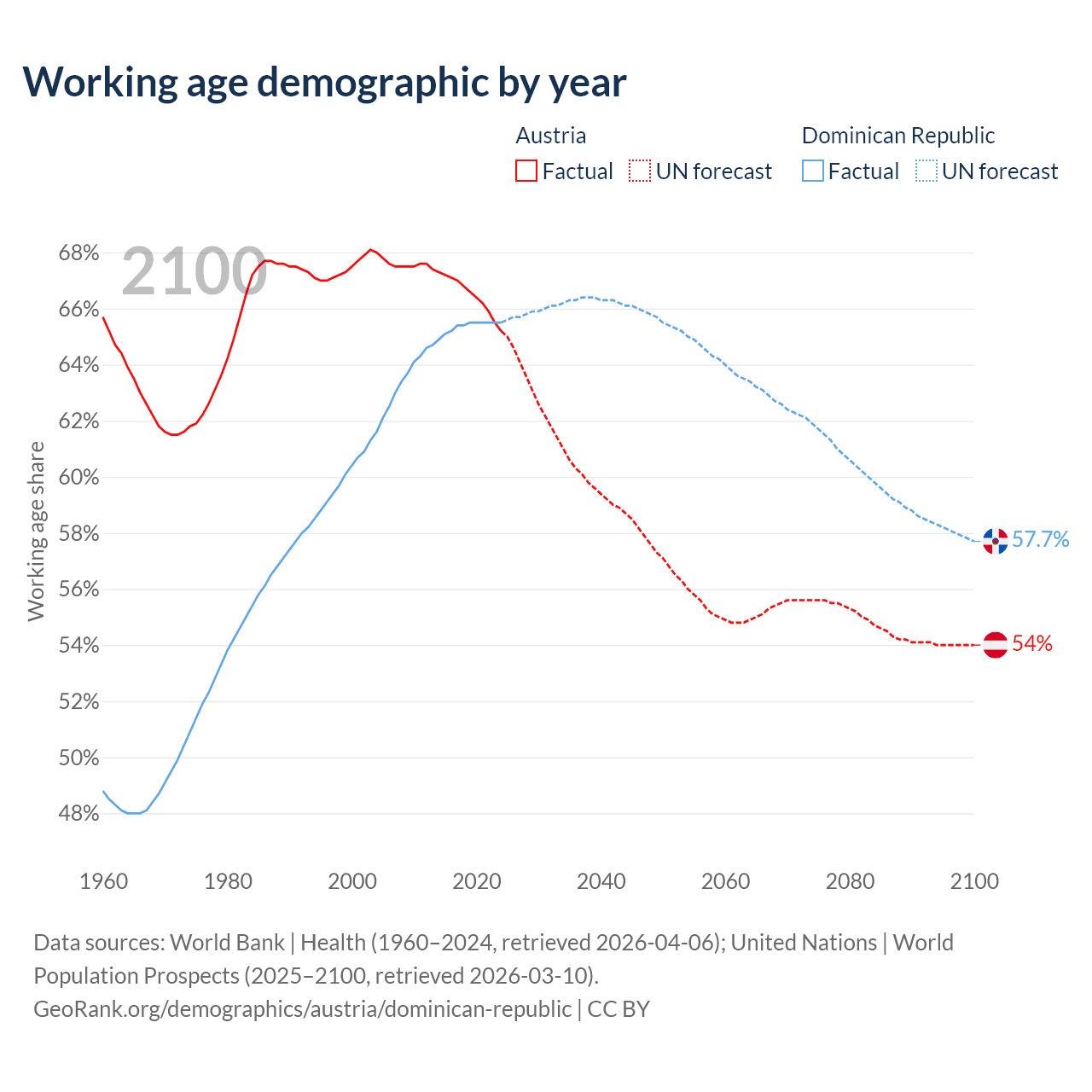 - Austria has 5.97M working age adults (aged 15-64) vs 7.63M in the Dominican Republic.