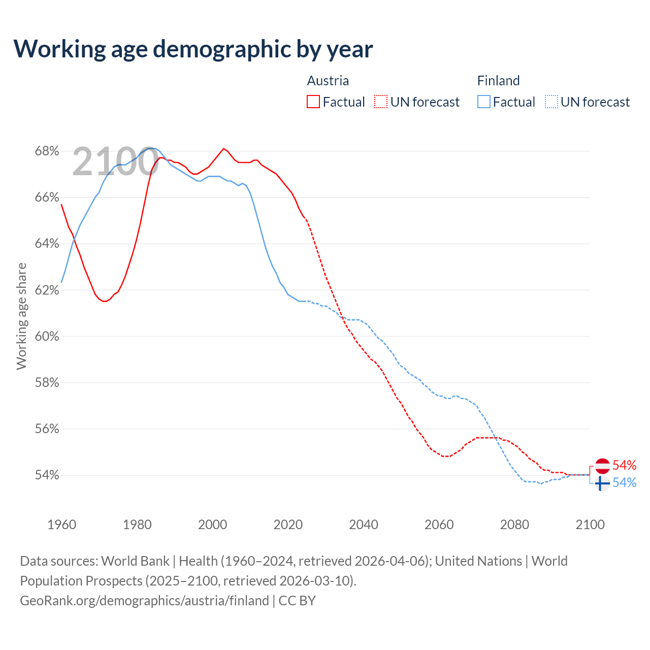 - Austria has 5.97M working age adults (aged 15-64) vs 3.46M in Finland.