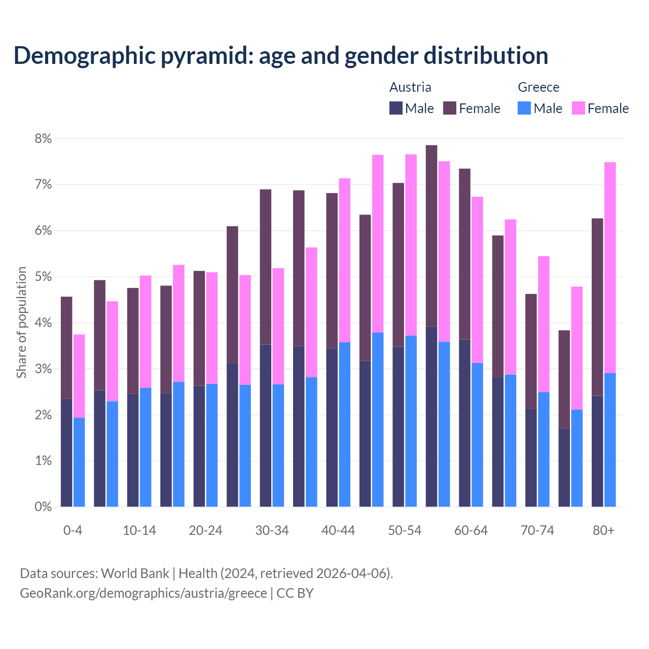Demographics of Austria compared to Greece: