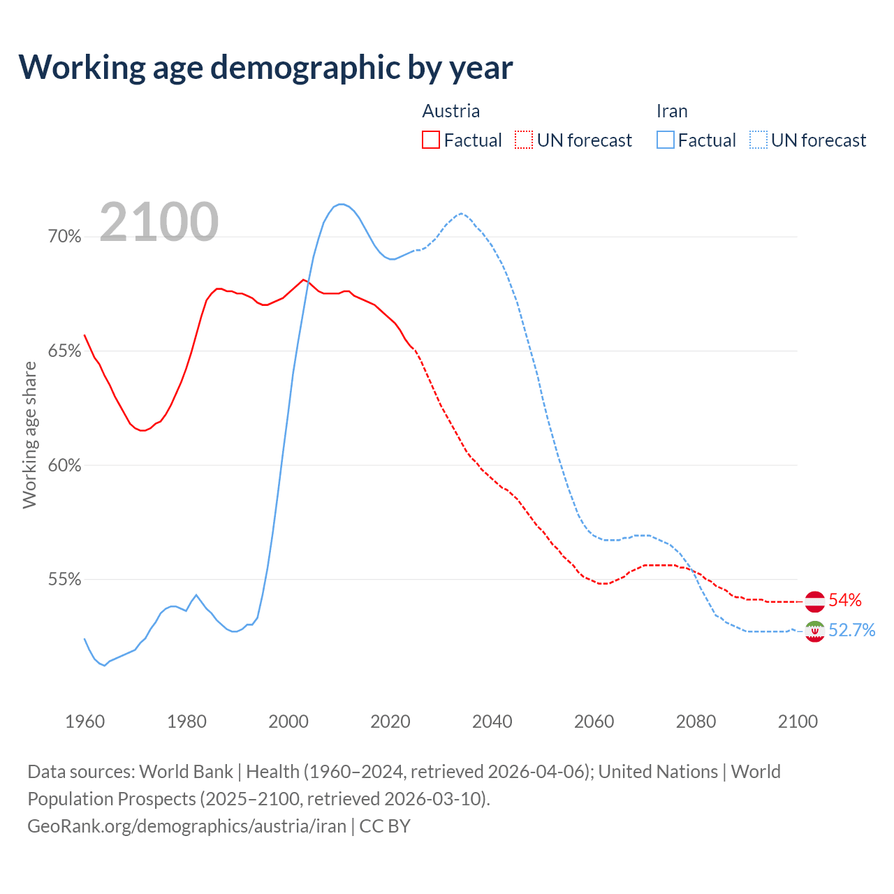 - Austria has 5.97M working age adults (aged 15-64) vs 64.8M in Iran.