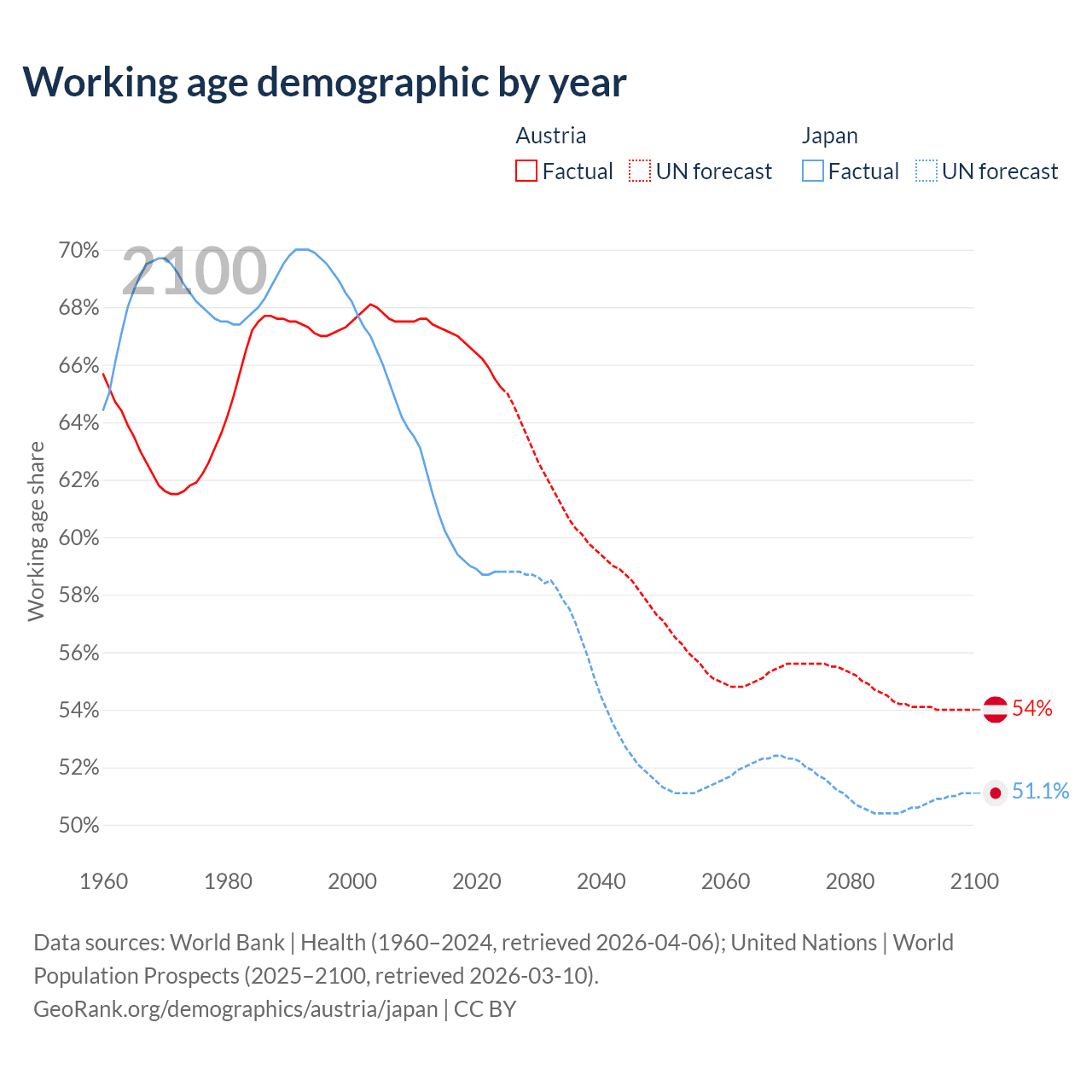 - Austria has 5.97M working age adults (aged 15-64) vs 72.1M in Japan.