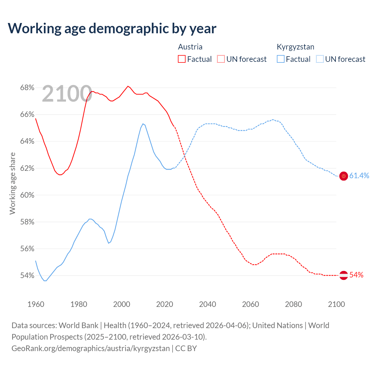 - Austria has 5.97M working age adults (aged 15-64) vs 4.63M in Kyrgyzstan.