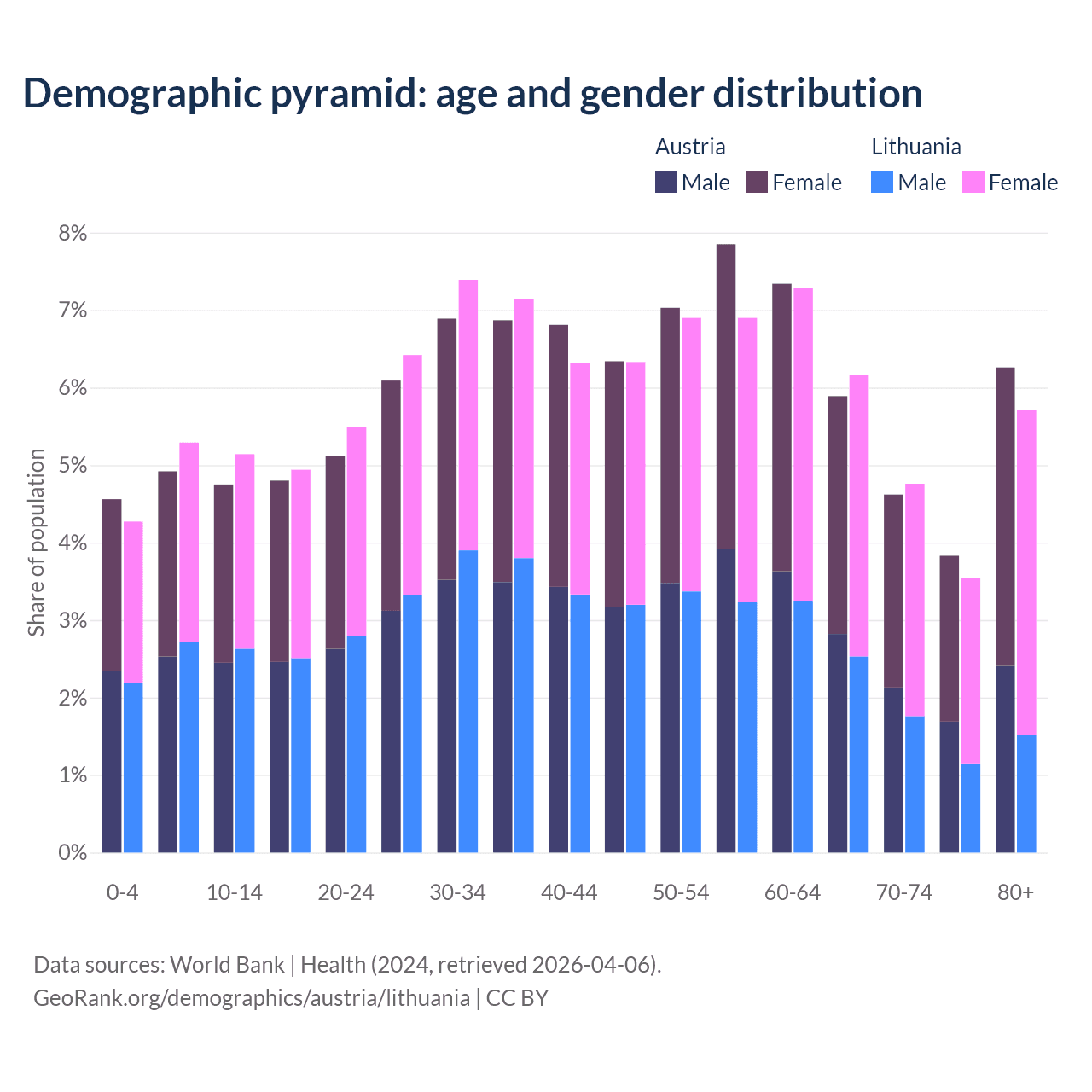 Demographics of Austria compared to Lithuania: