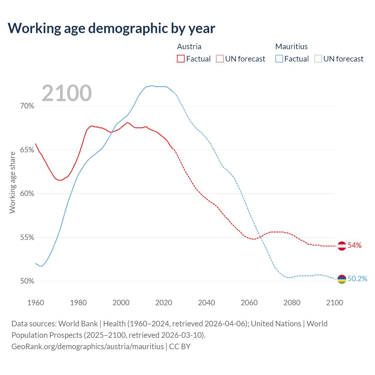 - Austria has 5.97M working age adults (aged 15-64) vs 889K in Mauritius.